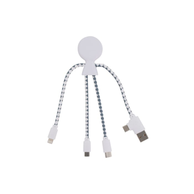 Bio Charger Cable in White. Mr. Bio is a Multi-Charging Cable, with a Dual USB & Usb-C Input Connector & Three Different Connectors to Charge Your Devices Ecologically! Mr. Bio is Made of Recycled Plastic & Dupont Tyvek Cables. the Total Recycled Content is 61% Based on the Item Weight. the Cable is Packed in a Sustainable Fsc-Certified Paper Envelope. Xoopar Products Cannot be Sold in France & Spain. Minimum Quantities Apply.