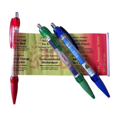 the Retractable Banner Pen with Colored Tip, Rubber Grip & Clip with Silver Chrome Plunger, Hanging Rope Provides Customized Advertising Paper. These Wonderful Writing Utensils Feature a Full-color Retractable Banner Made of Laminated Paper; You Can Now Provide a Wealth of Information on an Attractive But Cost-effective Marketing Tool That is Truly Mightier Than the Sword.