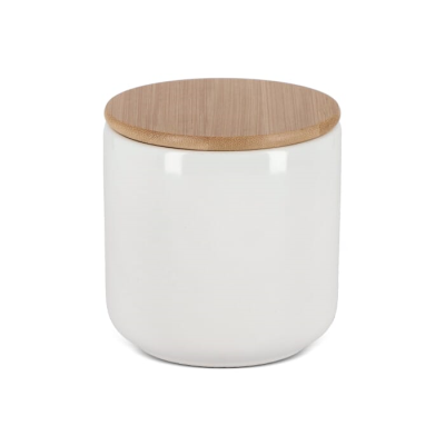 CANISTER CERAMIC POTTERY & BAMBOO 500 ML in White