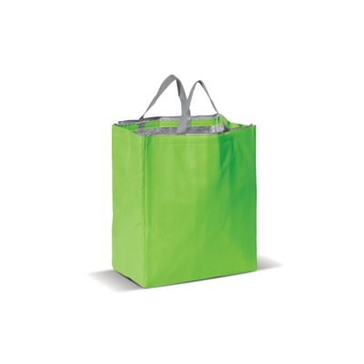 5 x 19.5 x 39 Cm, 100 G & M² in Pale Green. Non-Woven Large Cool Bag with Zipper & a Firm Handle. a Large Print Area. Minimum Quantities Apply.