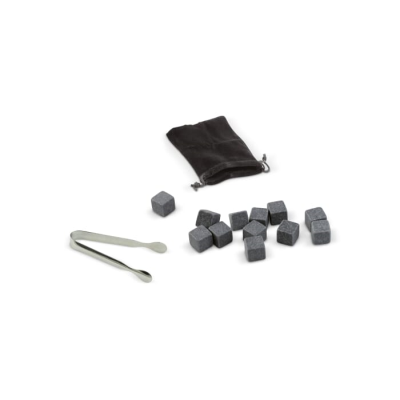 Enjoy a Cold Drink Without Diluting It with Ice. Store These 12 Basalt Stones in the Freezer & Use Instead of Ice Cubes. Enough Stones for Four Drink. the Set Includes a Velvet Pouch for the Stones & Tongs. Comes Packaged in a Gift Box. Minimum Quantities Apply.