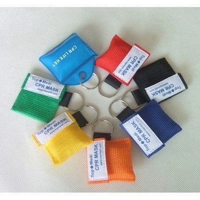 the Portable Cpr Face Mask with White Base Cloth Includes a Nylon Case, Disposable 11.8 Inch x 7.8 Inch Cpr Mask. It is an Excellent Barrier to Moisture & Helps Prevent the Transfer of Bodily Fluids. Custom Logo Can be Imprinted with All Colors.