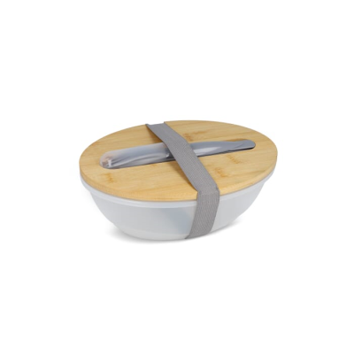 Lunch Box Made From Recycled Polypropylene (Pp) & Bamboo. It Includes a Cutlery Set & a Convenient Polyester Elastic Closure, Making It a Practical Choice for Meals on the Go. Minimum Quantities Apply.