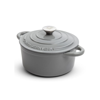 8L in Pale Grey. Classic Enamel Cast Iron Pan From the Swedish Brand Orrefors Jernverk. This Small (2.8L) Round Pan is Very Suitable for a Tasty & Hearty Stew. Perfect for Roasting But Also for Cooking Everyday Food. Minimum Quantities Apply.
