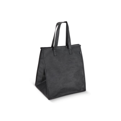 5 x 37Cm 75G & M² in Black. Recycled Pet Non-Woven Cool Bag (75G & M²) with Aluminium Metal Foil Lining. Large Front Panel for Branding. Ideal for Shopping Trips or Picnics. Minimum Quantities Apply.
