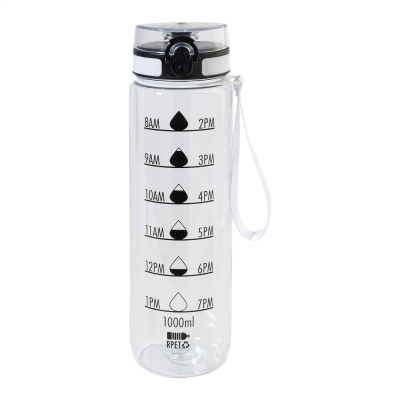 Frosted RPET Sports Bottle with Motivational Volume & Time Markings, Featuring an Auto-Open Flip-Top Drink Lid with Safety Lock & Carry Strap. 1000 Ml. Bpa-Free. Not Suitable for Carbonated Drink. Minimum Quantities Apply.