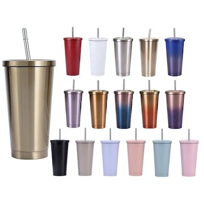 THERMAL INSULATED STAINLESS STEEL METAL WATER CUP with Straw